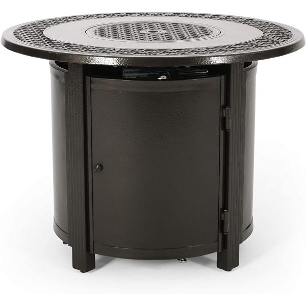 Gather around a warm fire source, relax under the night sky, and spend your summer memories. Constructed from smooth and sturdy aluminum, it not only offers an incredible upgraded style, but is also perfect for parties thanks to its convenient seating arrangement and built-in tank holder. This brazier comes with a burner cover to cover the fire pit when not in use and can also be used as a side table.